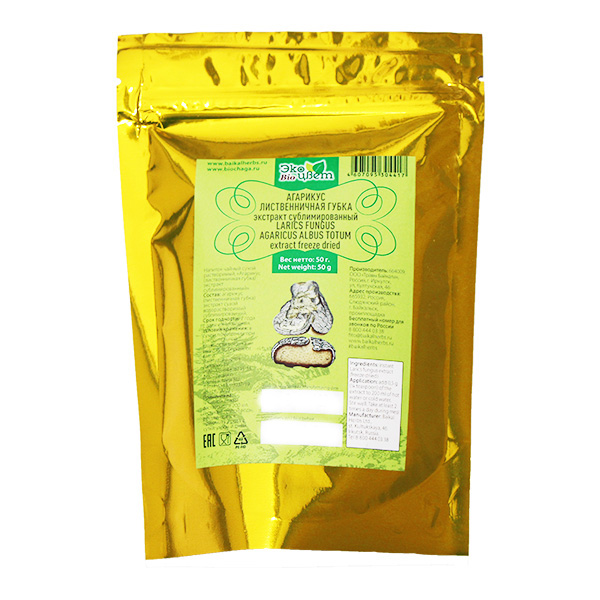 Kvalitní, 100% extrakt z přírodní houby Agaricus, rostoucí na stromech v Rusku, v sibiřských lesích.